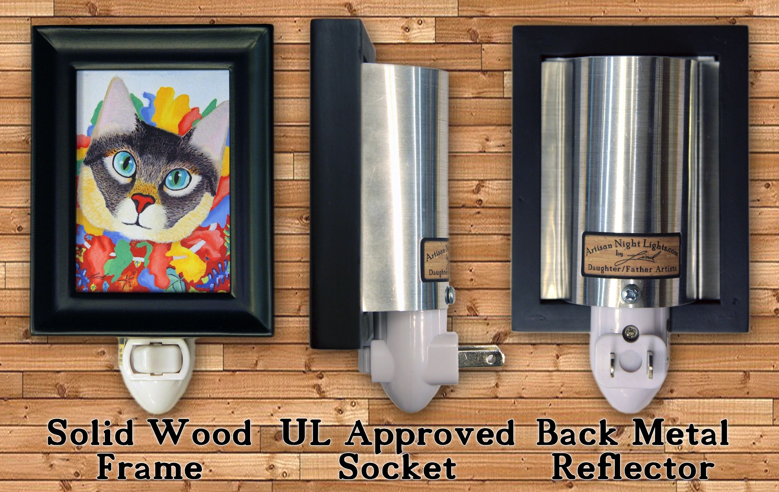 Gwen and Carl Lind are Orange County California based award-winning Daughter/Father artists who collectively have sold their art through hundreds of galleries nation-wide since 1997.Together they compose each piece of art and design and build their Artisan Night Lights, Accent Lamps, Magnets and more.